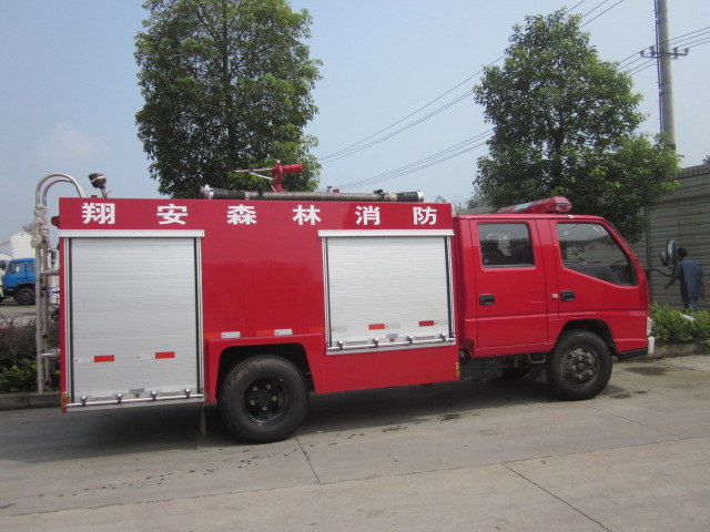 1.江鈴2T水罐消防車(chē),選用江西五十鈴JX1061TSG23底盤(pán)基礎上加裝上裝部分而成,主要組成部分有容罐、器材箱、消防泵、消防炮、以及電器系統、傳動(dòng)系統等,車(chē)輛設計精巧,外形美觀(guān),線(xiàn)條流暢,整體式模式架結構,機動(dòng)性能強,環(huán)保性能好,人性化設計,器材布置合理,取用方便,各專(zhuān)業(yè)及企業(yè)事消防隊的理想滅火裝備。