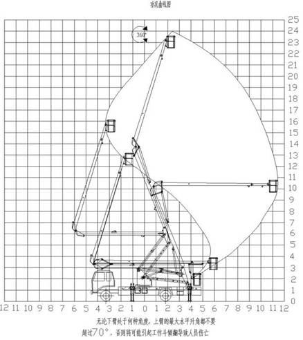 2、臂架/轉臺:三節折臂,型材Q345B/5mm,臂架加固,臂架截面四邊形,臂架起伏角度,0°-70°(相對水平面),轉臺雙向360°回轉,采用了先進(jìn)的渦輪蝸桿式減速機構,(具有自潤滑和自鎖功能)后期維護也可方便的通過(guò)調整螺栓位置輕松達到效果;回轉機構采用可調節式,方便調節;