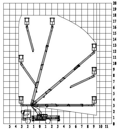 作業(yè)工況: 東風(fēng)20米伸縮臂高空車(chē),最大作業(yè)高度20m,最大作業(yè)高度時(shí)作業(yè)幅度2.9m,最大作業(yè)幅度駕駛室區域4 m;駕駛室后11.5m,最大作業(yè)幅度時(shí)作業(yè)高度4.7m,雙向360°連續回轉。 標準配置:四節伸縮臂,伸縮缸內置帶鋼絲繩傳動(dòng),吊藍額定載額200KG。操作方式為手動(dòng)和電動(dòng)結合,下車(chē)和吊籃電控雙位操作,電液比例調速,采用CAN和控制器自動(dòng)控制,帶顯示屏,設置保護模式進(jìn)行限幅,安全、可靠;吊藍設有發(fā)動(dòng)機啟動(dòng)和熄火開(kāi)關(guān),操作方便,節省燃油;支腿手動(dòng)操作,H型支腿穩定性好,支腿可同時(shí)或單獨操作,操作靈活,能適應多種工況。下車(chē)與上車(chē)互鎖,操作安全、可靠;吊籃采用先進(jìn)的靜態(tài)液壓自動(dòng)調平,更加穩定和可靠。吊籃帶遙控操作。 | ||||||