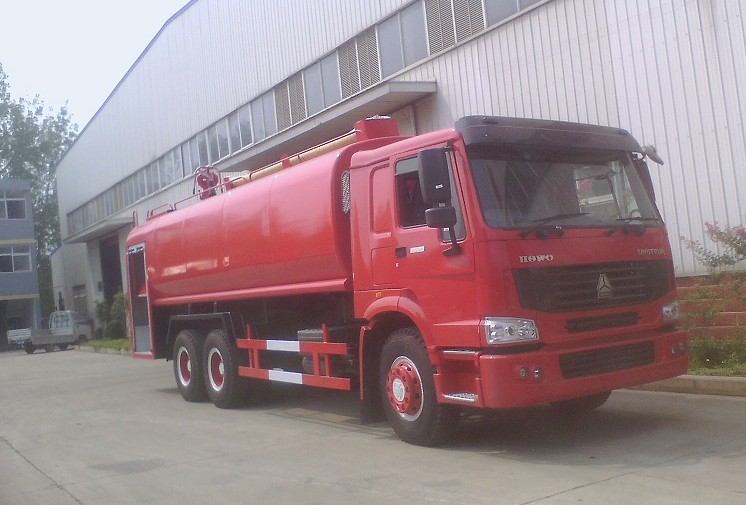 豪沃后雙橋消防供水車(chē)是豪沃ZZ1257M4647C型載重汽車(chē)二類(lèi)底盤(pán)改裝而成, 該車(chē)由乘員室、水液罐(車(chē)身)、水泵房、器材箱、水泵及進(jìn)出水泡沫系統、消防炮、電子警報器、警燈等主要部分組成。車(chē)的總體布局為三段式,前部是乘員室,中部為泵房,后部是車(chē)身,車(chē)身前部為水液罐,后部為器材箱。該車(chē)具有功率大,車(chē)速高,載液量大等特點(diǎn),采用加長(cháng)駕駛室,乘座舒適,操作集中,維修簡(jiǎn)便.該車(chē)可廣泛用于大中城市公安消防隊,石油化工,廠(chǎng)礦企業(yè)及港口,碼頭等場(chǎng)所,撲救大型油類(lèi)火災和一般物質(zhì)火災,是理想的大型消防裝備。