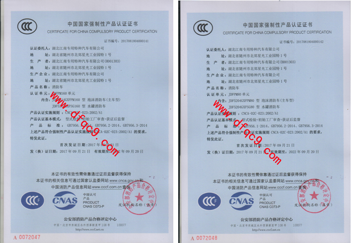 最新消息湖北江南消防車(chē)3C認證CCCF)已下來(lái),整車(chē)消防性能符合GB7956-2014標準要求;底盤(pán)通過(guò)國家強制性產(chǎn)品認證;發(fā)動(dòng)機排放符合GB17691-2005第五階段限值的規定要求(國Ⅴ標準);整車(chē)通過(guò)國家消防裝備質(zhì)量監督檢驗中心檢測(報告編號:Zb201630548)并已列入工信部汽車(chē)新產(chǎn)品公告.