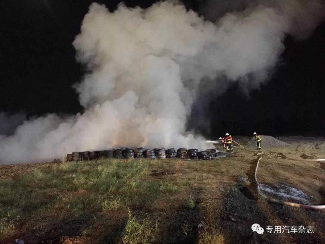 這是第二個(gè)輪胎滅火實(shí)驗:四百個(gè)充分燃燒的輪胎,火焰高度25米,采用江特MC3000壓縮空氣泡沫城市主戰消防車(chē),3%AFFF泡沫液,僅用時(shí)1分53秒將明火打滅,用水1200升,泡沫液46升。