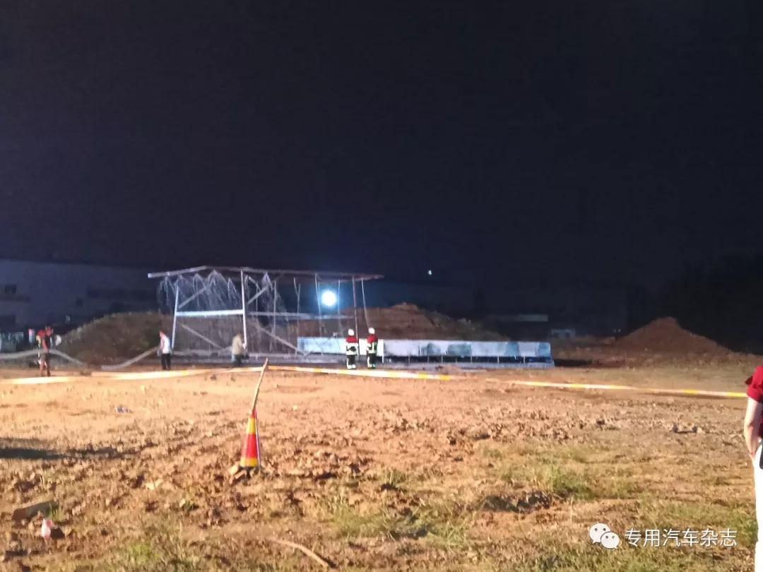 為了破解快速撲救換流站變壓器火災的難題,湖北江特專(zhuān)用特種汽車(chē)有限公司研發(fā)的壓縮空氣泡沫消防車(chē)于2018年8月25日晚7點(diǎn)在公司廠(chǎng)區內實(shí)施滅火試驗,并邀請國家電網(wǎng)、中國石油、中國石化、應急救援國家工程實(shí)驗室、上海消防研究所、天津消防研究所、湖北消防總隊、隨州消防支隊、隨州市、曾都區、市職等主要領(lǐng)導觀(guān)摩指導。這次試驗是全國乃至全球首次直流油大規模真火試驗,針對性強,研究?jì)r(jià)值高,具有學(xué)術(shù)層面的國際影響力和現實(shí)的工程應用指導意義。本次試驗,使用的是直流油,閃點(diǎn)不低于135℃;油池尺寸10m*10m,用油量15噸;采取燃氣加熱方式,加熱溫度將高于直流油的閃點(diǎn)135℃;預計點(diǎn)火時(shí)間19是45分左右。開(kāi)始加熱時(shí)表面油溫45°,加熱55分鐘時(shí)開(kāi)始點(diǎn)火,油溫148°。微細泡沫滅火系統啟動(dòng),試驗裝置噴出泡沫后將移至油池上方進(jìn)行滅火并記錄滅火時(shí)間。在此過(guò)程中,您可以看到微細壓縮空氣泡沫滅火系統形成的泡沫毯,與普通的低倍數泡沫系統包括傳統概念的壓縮空氣泡沫系統相比,微細壓縮空氣泡沫更加均勻、細膩,穩定性和持久性更好。最終滅火時(shí)間4分51秒,滅火結束后,油面82°,油底61度。